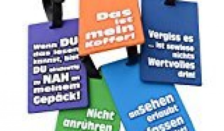 Achtung – – Alle Farben werden VERSENDET – – Gepäckanhanger mit witzigen deutschen Sprüchen und elastischem Befestigungsband. Die Anhänger werden einfach an die Taschen, Koffer, Gepäckstücke angebracht. Durch die kräftigen Signalfarben erkennen Sie Ihr Gepäck sofort. Auf der Vorderseite ist der Spruch, auf der Rückseite ist ein ausfüllbares Adressfeld für Ihre Daten (Name, Adresse, Telefonnummer).