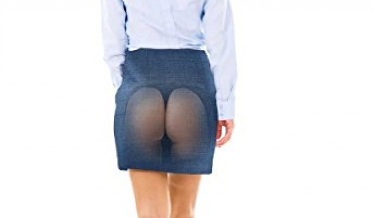 Der frivole Scherzartikel kommt in der Form eines blauen Rocks daher, welcher von vorn und von der Seite betrachtet eigentlich noch ganz normal aussieht. Der spezielle Clou ist allerdings die Rückansicht! Denn diese lässt scheinbar einen knackigen Damenhintern inklusive reizvoller Unterwäsche durchscheinen (das Motiv der Unterwäsche ist bei dem durchsichtigen Rock nicht wählbar)!