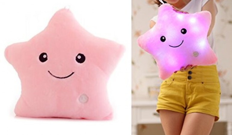 Geschenk Idee! Bunte LED leuchtende Kissen Weich Sofa Kissen (Stern Rosa) Geschenk