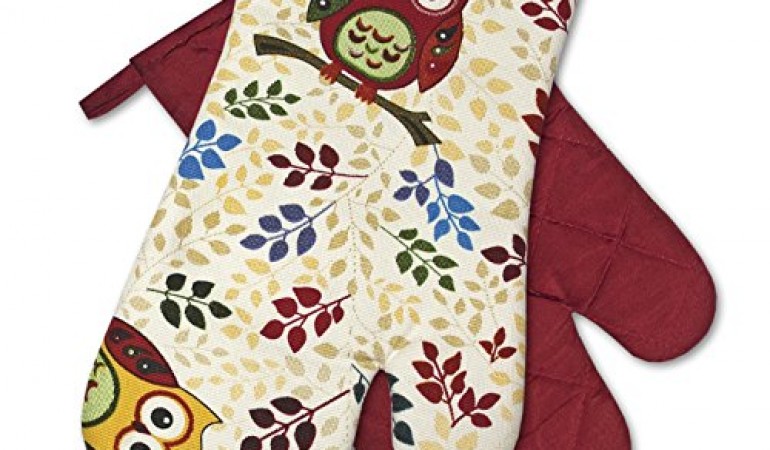Originelle Serie “ Vergnügte Eulen “ – zur Auswahl : Topflappen oder Backhandschuhe , wunderschönes farbenfrohes Eulen – Motiv – hochwertig , 100% Baumwolle , eine schöne kleine Geschenk – Idee – NEU – Hochwertig , 100% Baumwolle , eine schöne kleine Geschenk – Idee – NEU (Stoff, 15 x 27 Backhandschuhe (1 Paar)) Geschenk