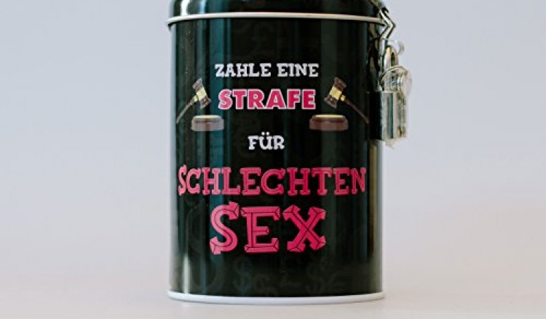 Spardose als Strafkasse – “ SEX Kasse “ – stabile Sparbüchse aus Metall – incl. 2 Schlüssel – mit STRAFE für schlechten Sex – Männer & Frauen / Stop Blechdose – Schlafen – Schlafzimmer – Geld Sparschwein / Betten – lustig witzig Geschenk